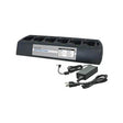- Charges (6) single batteries or with (6) radios attached